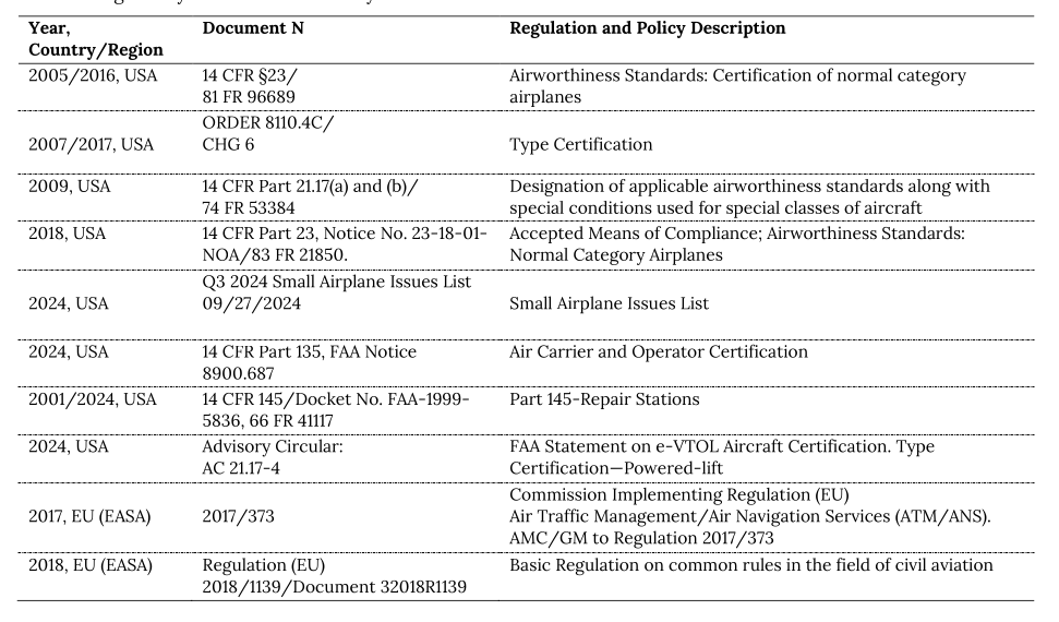 Table 2. Regulatory documents issued by FAA and EU-EASA