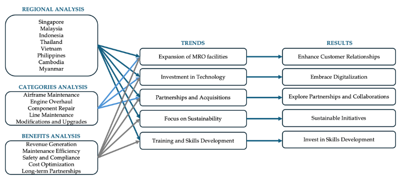 Based on the identified trends, we propose five key strategies to effectively adapt: (1) Investing in Skills Development, (2) Embracing Digitalization, (3) Enhancing Customer Relationships, (4) Exploring Partnerships and Collaborations, and (5) Implementing Sustainable Initiatives. First, to address the shortage of skilled personnel and ensure a competent workforce, MRO shared services providers should invest in training and skills development programs in collaboration with educational institutions and vocational training centers. Second, embracing digitalization and advanced technologies— such as data analytics, predictive maintenance, and remote monitoring—will optimize maintenance processes, enhance operational efficiency, reduce costs, and improve safety.